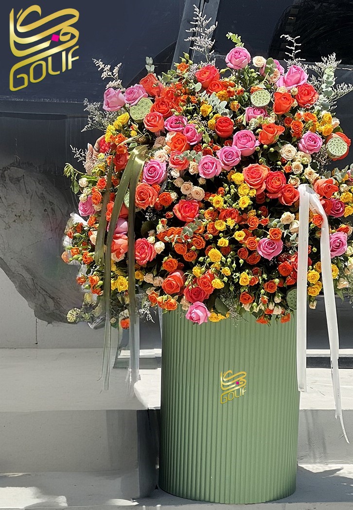در طراحی این باکس گل از گلهای تازه، خوشعطر و باکیفیت استفاده شده است که با دقت و سلیقه توسط تیم حرفهای گلآرایی شدهاند. گلهایی مانند رز، رز مینیاتوری در رنگبندیهای خاص و چشمنواز در کنار هم قرار گرفتهاند تا جلوهای لوکس و دلنشین خلق کنند.