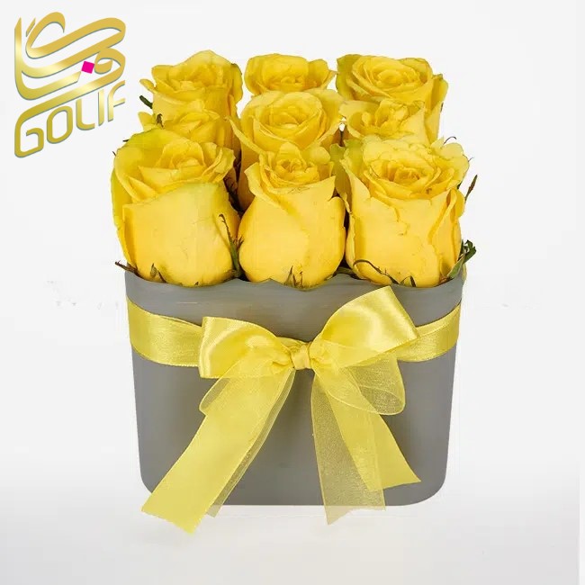 در طراحی این باکس گل از گلهای تازه، خوشعطر و باکیفیت استفاده شده است که با دقت و سلیقه توسط تیم حرفهای گلآرایی شدهاند. گلهایی مانند رز هلندی زرد در رنگبندیهای خاص و چشمنواز در کنار هم قرار گرفتهاند تا جلوهای لوکس و دلنشین خلق کنند.