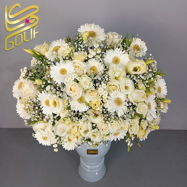 در طراحی این جام گل از گل‌های تازه، خوش‌عطر و باکیفیت استفاده شده است که با دقت و سلیقه توسط تیم حرفه‌ای گل‌آرایی شده‌اند. گل‌هایی مانند رز،ژربرا،لیسینتوس،رز مینیاتوری  در رنگ‌بندی‌های خاص و چشم‌نواز در کنار هم قرار گرفته‌اند تا جلوه‌ای لوکس و دل‌نشین خلق کنند.