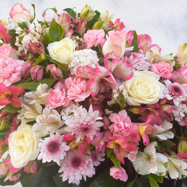 در طراحی این سبد گل از گلهای تازه، خوشعطر و باکیفیت استفاده شده است که با دقت و سلیقه توسط تیم حرفهای گلآرایی شدهاند. گلهایی مانند رز،رز ماتیکی،داوودی،میخک،آلسترومریا در رنگبندیهای خاص و چشمنواز در کنار هم قرار گرفتهاند تا جلوهای لوکس و دلنشین خلق کنند.