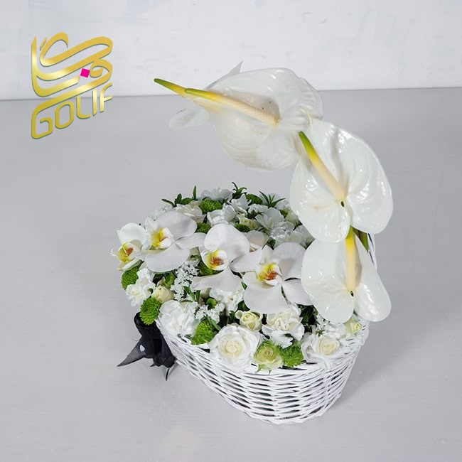 سبد گل تسلیت (ارکیده،آنتوریوم،رز مینیاتوری)